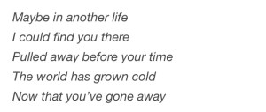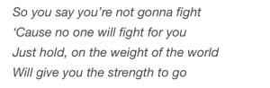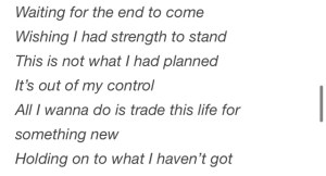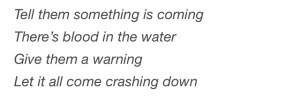 The playlist starts off rather melancholy (given what happens to Kenton’s family in the beginning of the book), and bounces back and forth between anger and grief – with some encouragement slipped in between here and there – before leading to a defiant, hopeful ending. I’ve included some relevant lyrics from each song and there’s a mix of styles and genres from a wide variety of artists, though it does trend in the alt/rock direction. Music from the 70’s all the way to recent years has made the list, and there’s even a South African song gracing this collection!